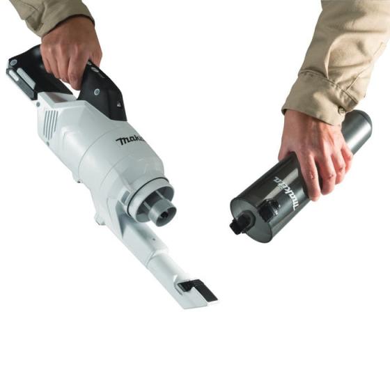 Features: Cyclonic filtration for reduced maintenance and ease of disposal HEPA filter provides high filtration rate of 99.97% Powerful max sealed suction of 20kPa 4 stage push button for optimal runtime & suction control High efficiency Brushless motor for 25 minutes runtime with BL4040 Specifications:Continuous Runtime25 minutes (BL4040)Max. air volume (m³/min)1.0m³/minMax. sealed suction20kPaOverall Length1,086mmSkin weight1.1kgSuction power100W, 60W, 35W, 15WTank Capacity440mLVoltage40V MaxWeight (with battery)1.9kg (BL4025) Includes: Floor Tool (127825-8) Sash Nozzle (451240-7) Sash Nozzle Holder (459354-6) Pipe (459353-8)